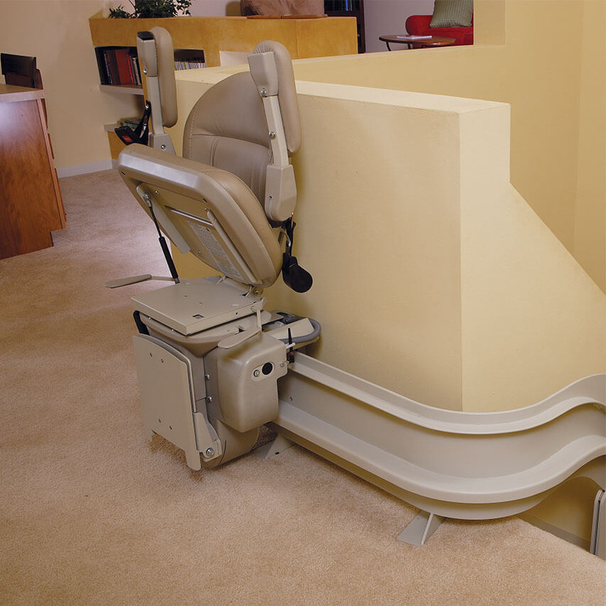 When you need a stairlift that curves, you need a Bruno Elite Indoor Curve — the chairlift custom built to precisely fit your home. Bruno’s curved stair chair delivers a premium smooth, stable ride around every corner. Quality craftsmanship is evident on every Bruno Elite stairlift, from the quiet, dependable ride to the plush seat. Add options such as power swivel seat, wider chair or custom fabrics to tailor-make the Bruno Elite stair lift to your needs.