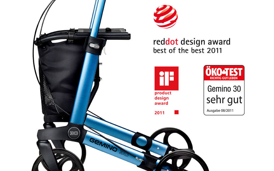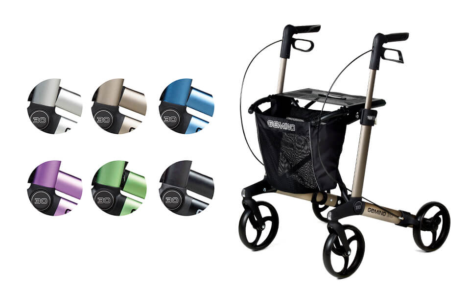 Looking for a lightweight rollator that stands out? A top-quality walking aid that will exceed your expectations when it comes to comfort, safety and design? Then look no further than the award-winning Gemino 30. The original 100% rollator comes in six attractive frame colours and offers lots of practical accessories to fit your active life – and personal style!