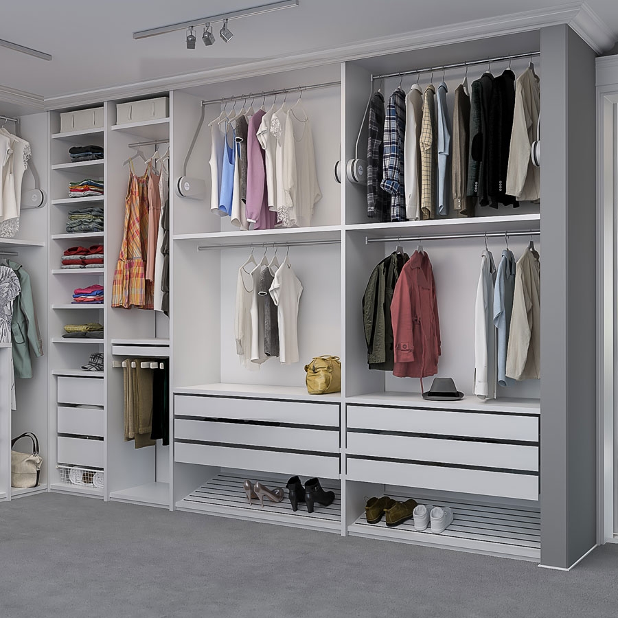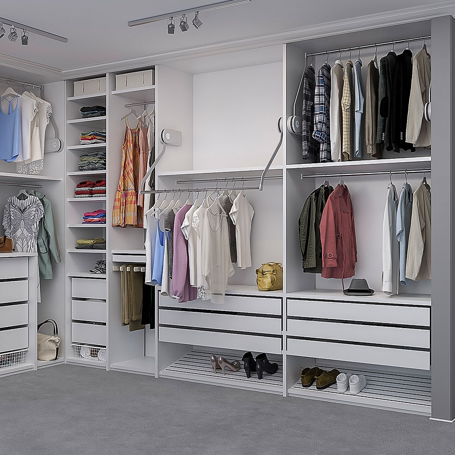 A height adjustable wardrobe rail, operated via handheld remote control. The clothes rail lowers and raises in an arc movement, and features an anti-collision safety stop feature. Discreet and very quiet, for those with limited reach ranges.