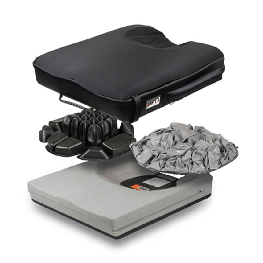 The JAY® J3™ wheelchair cushion provides outstanding stability and optimal pressure distribution for the client at high risk of skin breakdown, and offers the choice of JAY Flow™ fluid or ROHO DRY FLOATATION® air inserts.