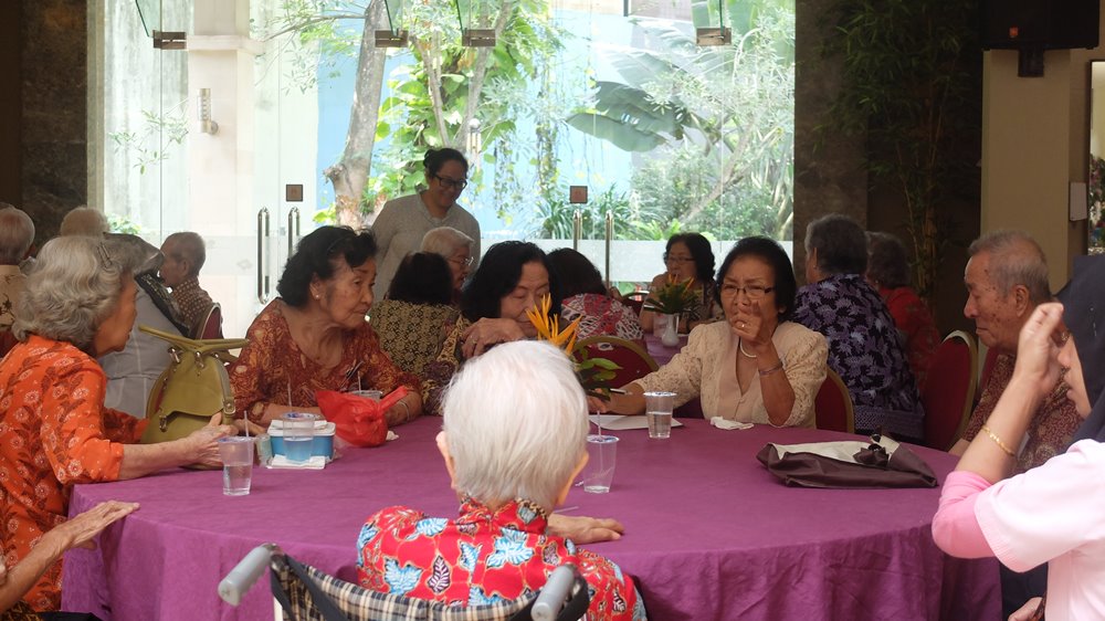 Waktunya untuk makan siang dan acara berakhir. Sebelum makan siang bersama, para warga senior berfoto bersama-sama.