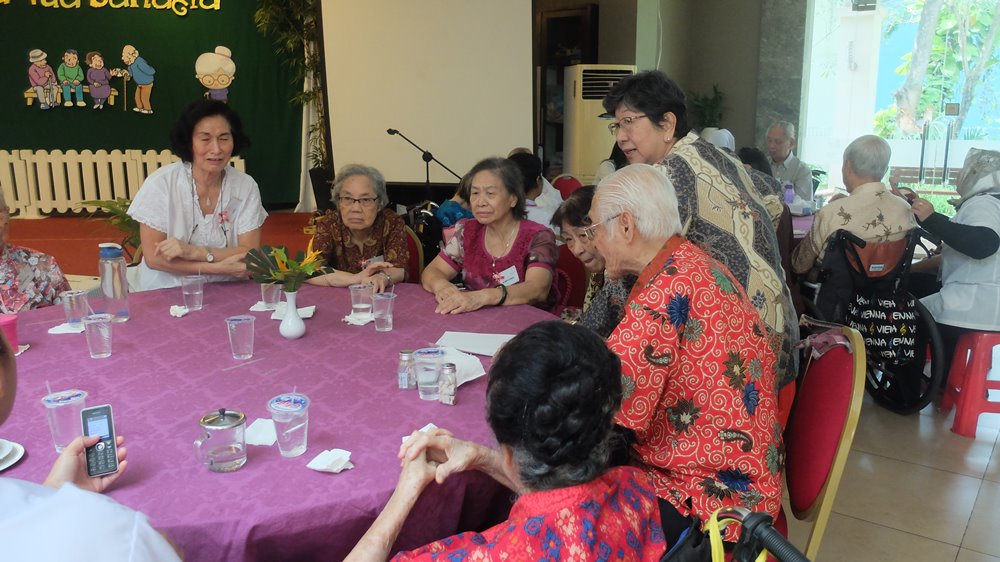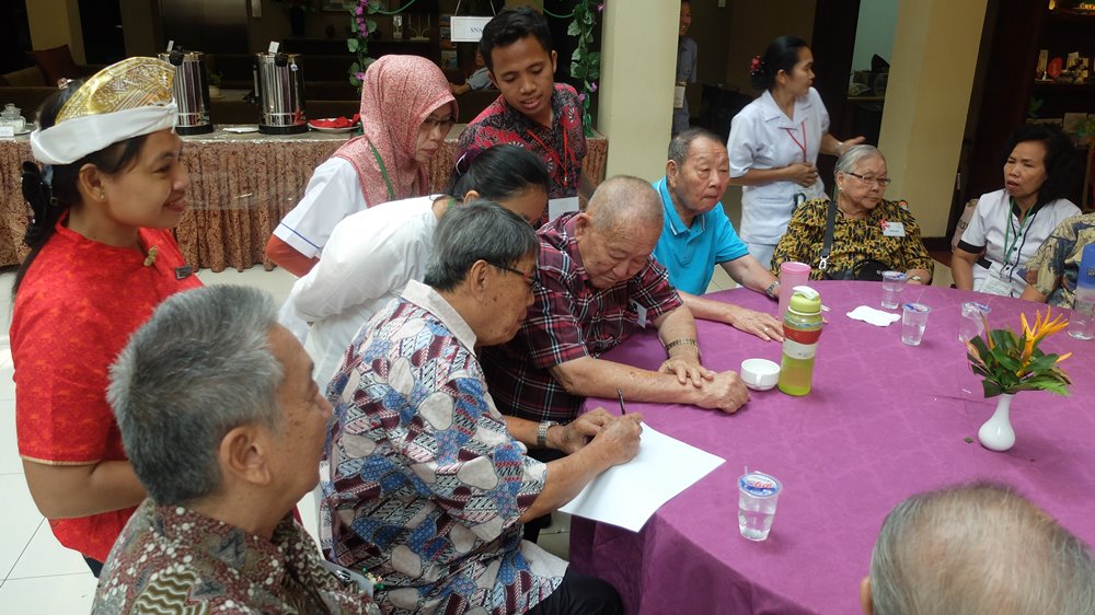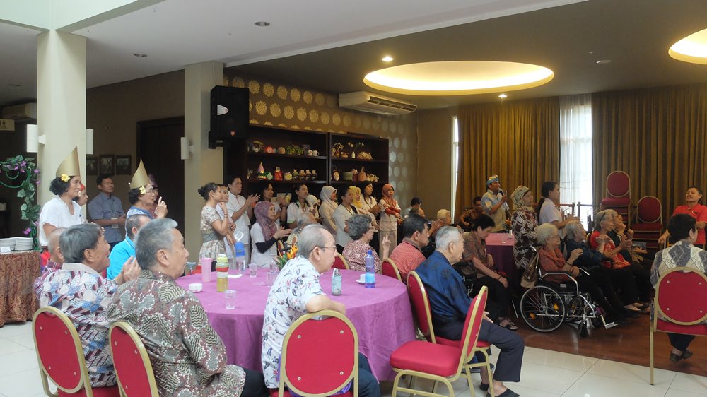 Caregiver yang mendampingi Opa dan Oma berkumpul dan ikut menyaksikan penampilan yang dipertunjukkan oleh warga senior.