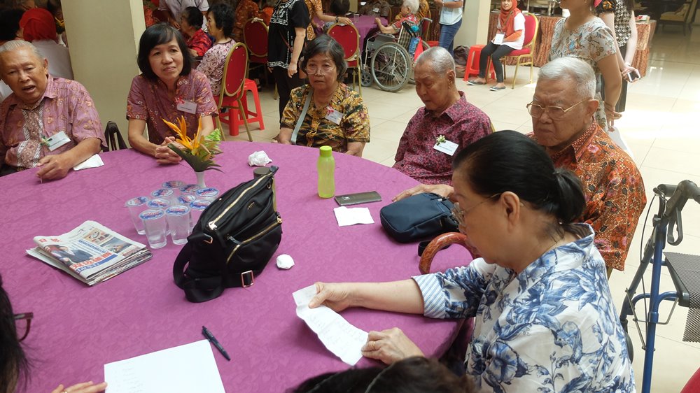 Pada permainan ini, para Opa dan Oma dibagi kedalam kelompok-kelompok yang beranggotakan 8-10 orang dalam satu meja.